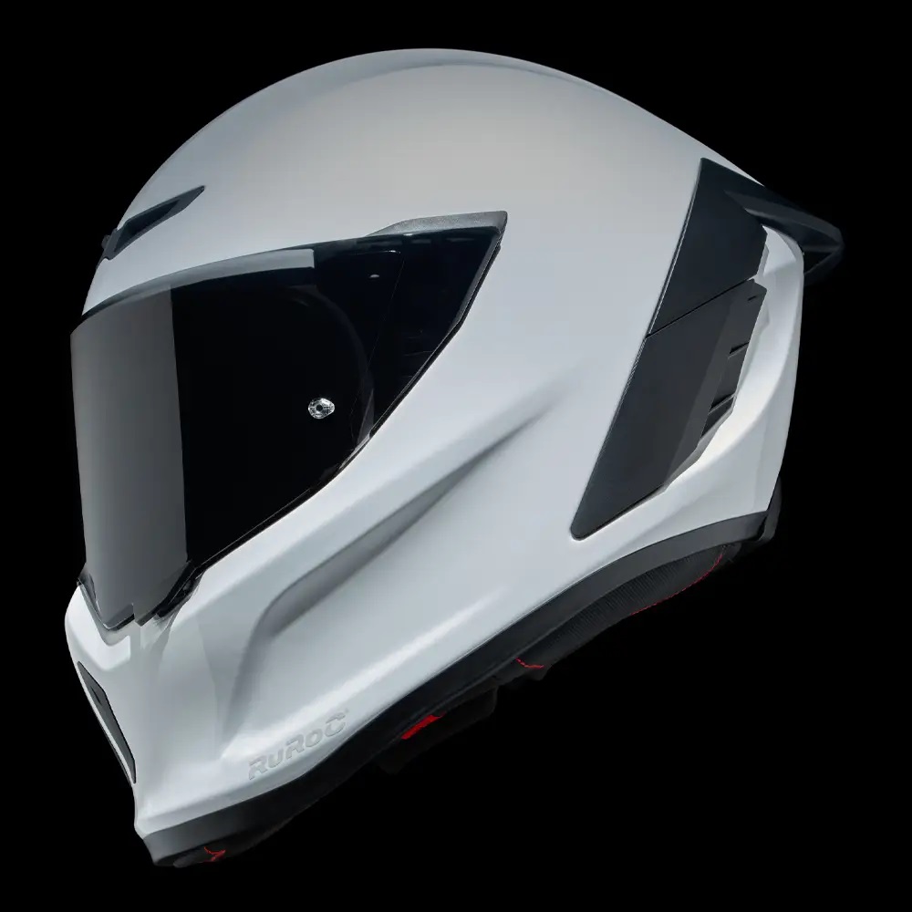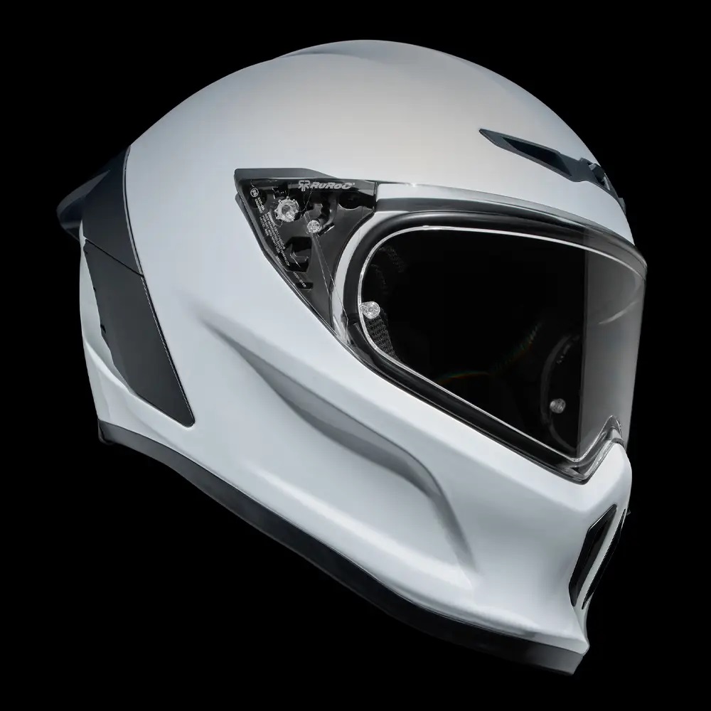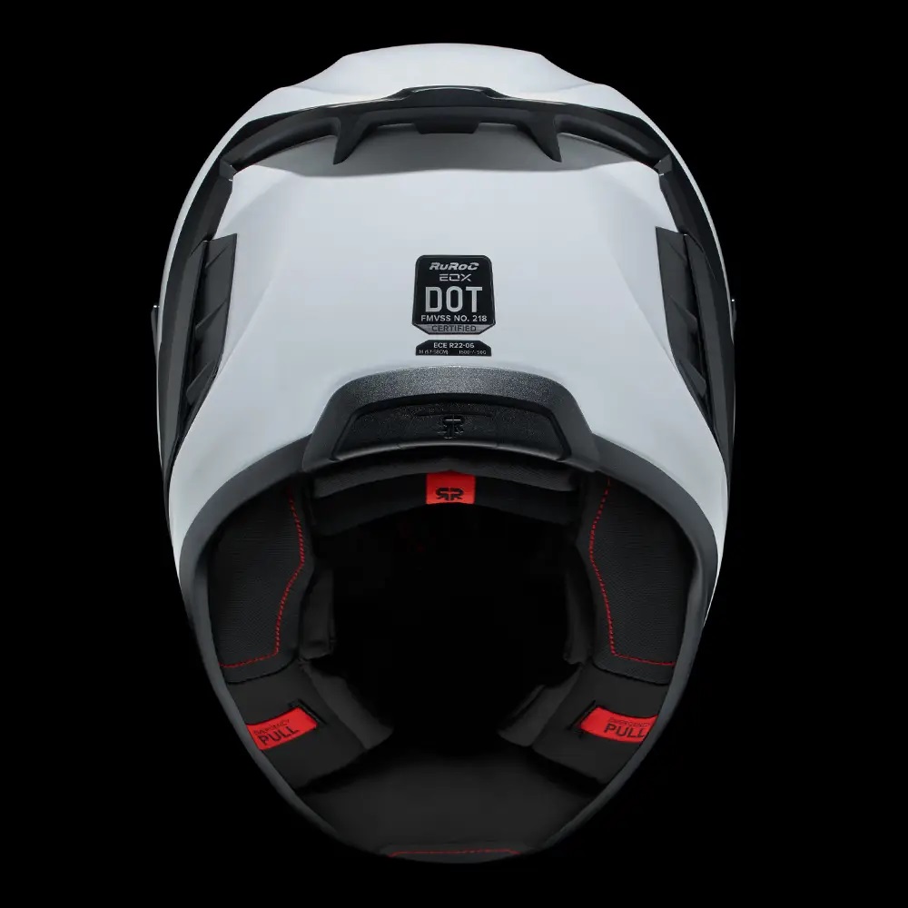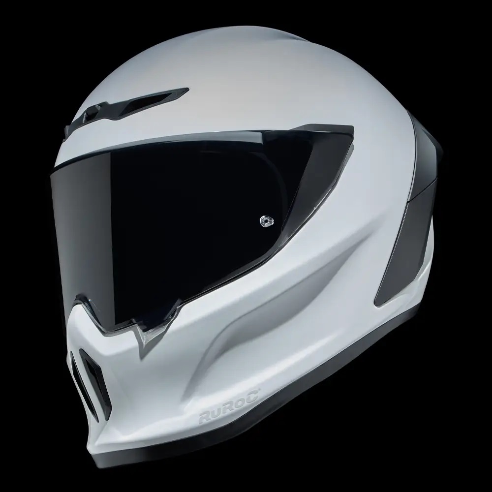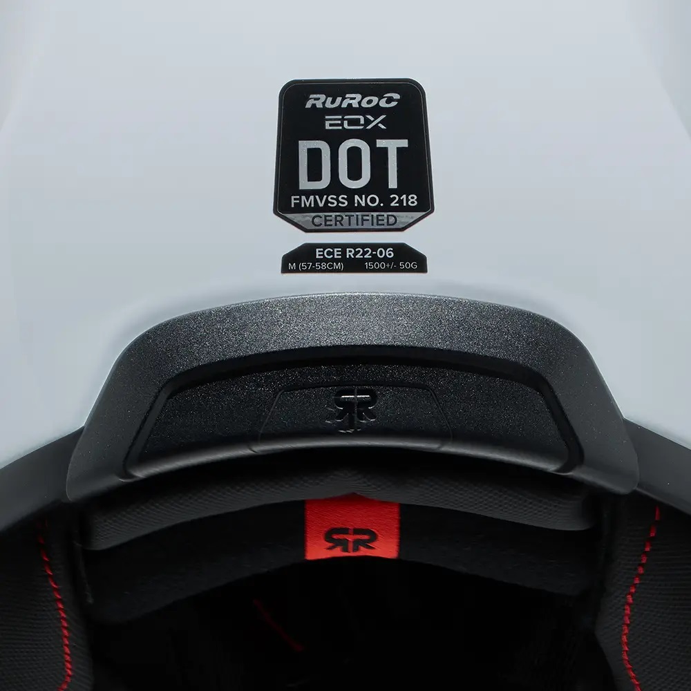 • Vopseaua albă îndrăzneață a modelului Ghost, cu finisaj lucios, are rolul de a evidenția noile detalii de design ale EOX. Nu numai  veți ieși în evidențădar și contururile elegante ale căștii și vizieraspoilerul și gurile de aerisire reimaginateCompletat cu un logo Ruroc tonal în relief pe bărbia căștii.