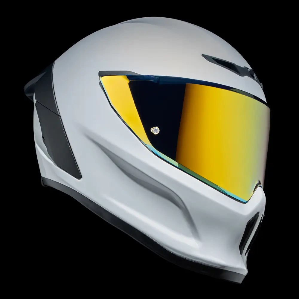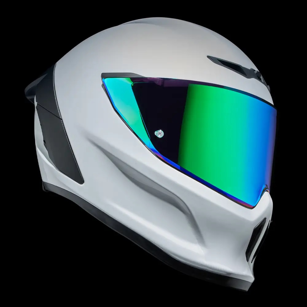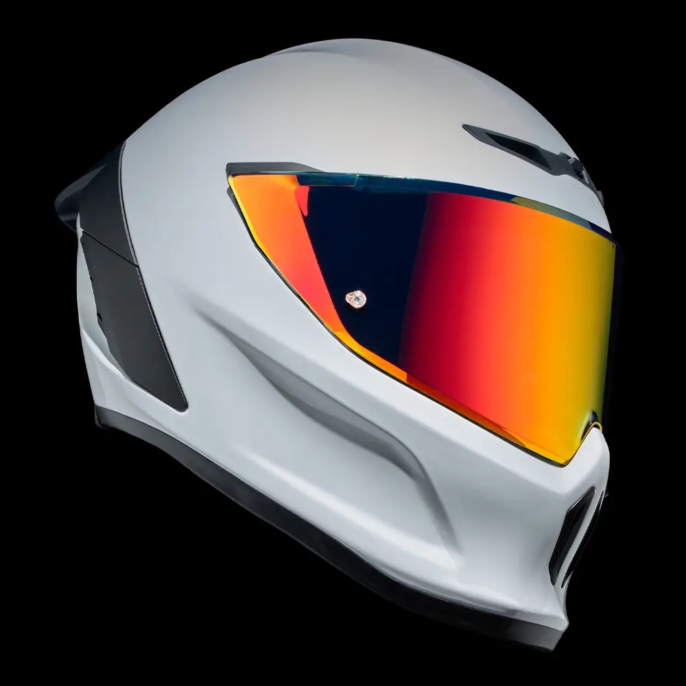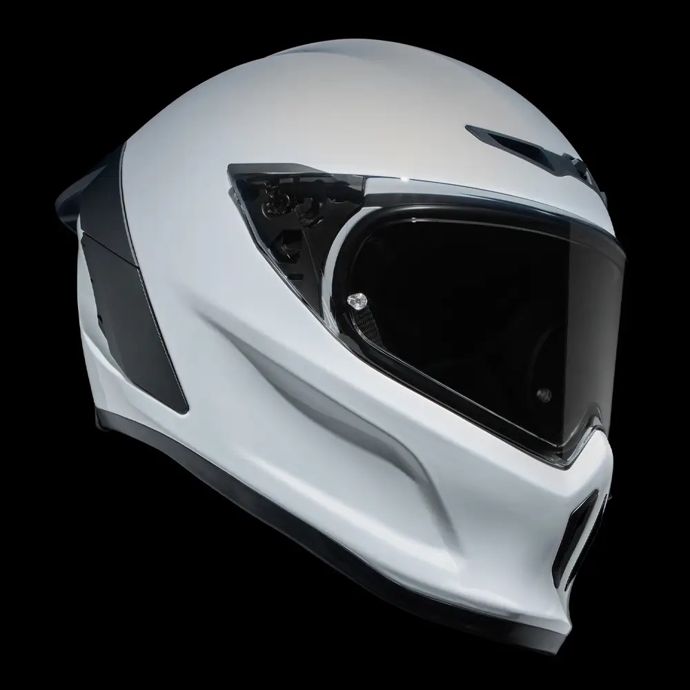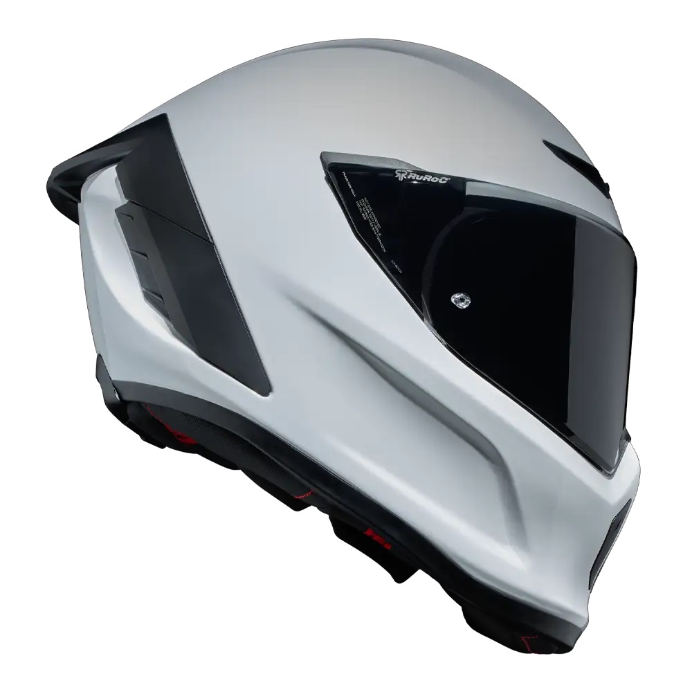 • Vopseaua albă îndrăzneață a modelului Ghost, cu finisaj lucios, are rolul de a evidenția noile detalii de design ale EOX. Nu numai  veți ieși în evidențădar și contururile elegante ale căștii și vizieraspoilerul și gurile de aerisire reimaginateCompletat cu un logo Ruroc tonal în relief pe bărbia căștii.