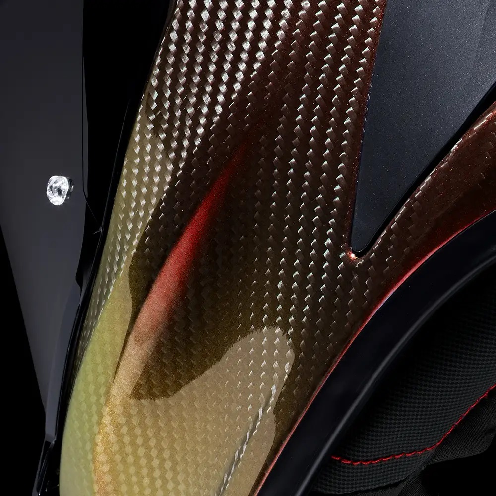• O explozie de roșu și portocaliu, Supernova este o fuziune de stil, știință și siguranță. Fiecare creastă și curbă a țesăturii din fibră de carbon îmbină coloritul bogat în sclipiri unice de culoare și lumină. Un design care sfidează dimensiunileiar calitățile sale depășesc mințile bărbaților obișnuiți.
