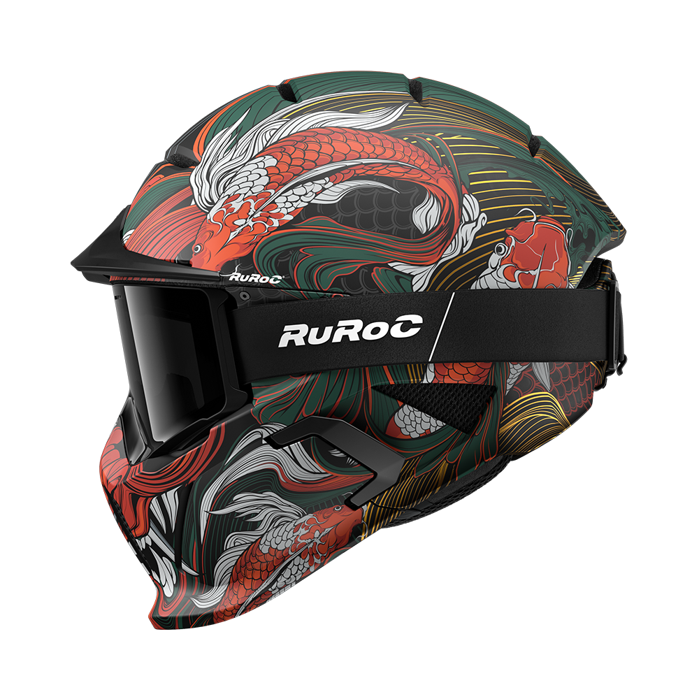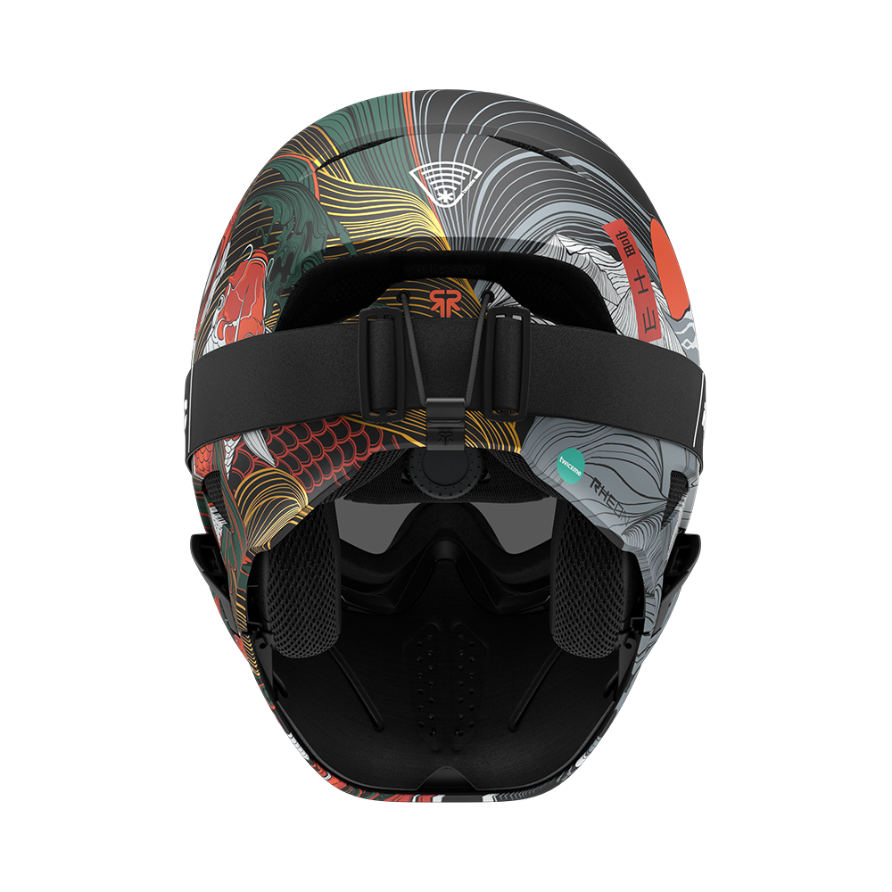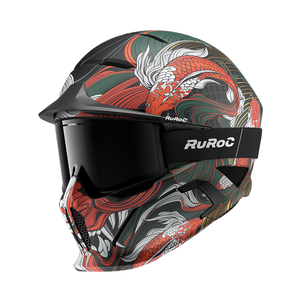 Pe o parte, se regăsește măreția liniștită a Muntelui Fuji, veșnic deasupra norilor, simbol al serenității backcountry-ului din Alpii japonezi. Pe cealaltă parte, prinde viață legenda mitică a Ultimului Koi — cel care a sfidat curentul, a ajuns la vârf și s-a transformat în dragon prin forța voinței. De la powder-ul sacru din Niseko până la culoarele abrupte din Hakuba, Fuji poartă spiritul Japoniei — o cască pe care nu doar o porți, ci o onorezi.